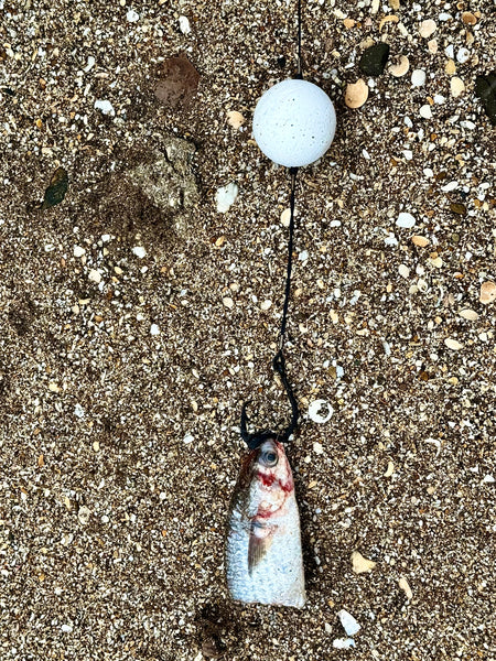 Proper bait size is very important when using this rig, too large of a bait may sink the float, we recommend testing baits for floatation until you get the hang of sizing them.